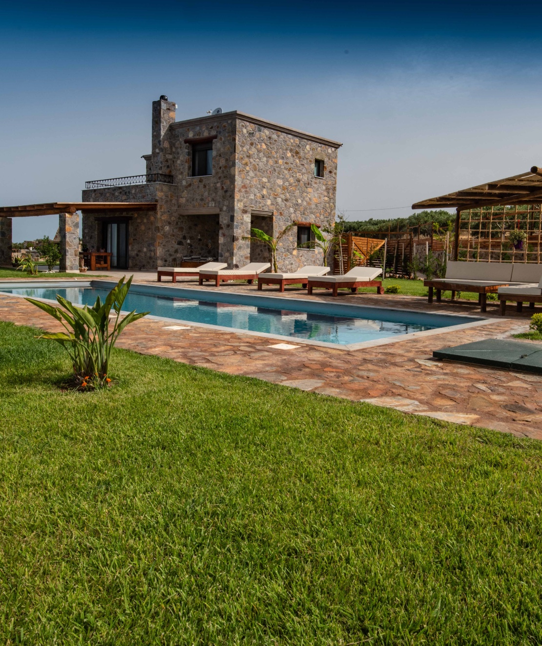 Two brand new two-storey villas surrounded by olive groves, entirely built with local stone and   furnished in the traditional Cretan style,  with wi-fi connection and air conditioning in every room.